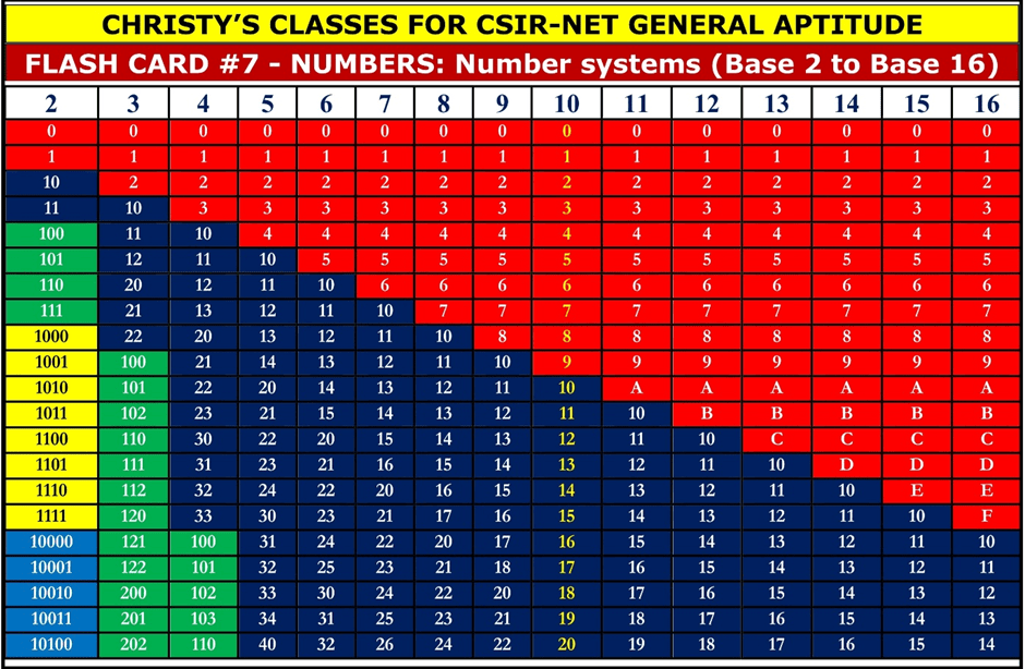 0-40 in Different Number Systems (Flash Card)